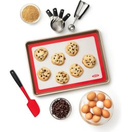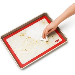 Mata silikonowa do pieczenia o wymiarach 41,9 × 29,2 cm Oxo Good Grips to praktyczne rozwiązanie, które znacząco ułatwia codzienne przygotowywanie wypieków. Dzięki niej pieczenie staje się bardziej komfortowe, a korzystanie z jednorazowego papieru do pieczenia przestaje być konieczne.