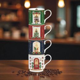 Zestaw czterech porcelanowych kubków z kolekcji Festive Avenue to doskonały wybór dla osób ceniących harmonię i świąteczny nastrój.