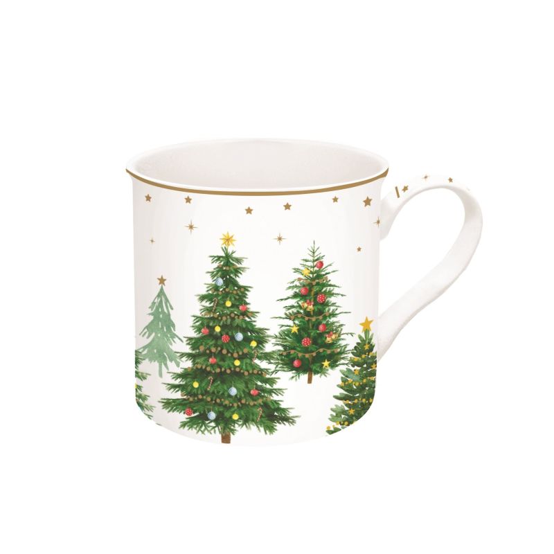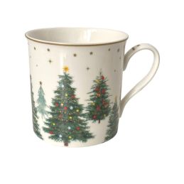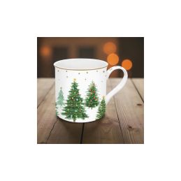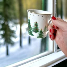 Porcelanowy kubek z kolekcji Festive Trees to wyjątkowa propozycja dla osób, które lubią otaczać się świątecznym klimatem w eleganckim wydaniu. Jego klasyczny kształt oraz subtelny dekor, przedstawiający delikatne, drobne choinki na biało - kremowym tle, tworzą harmonijną kompozycję, która od razu kojarzy się z ciepłem zimowych wieczorów i rodzinną atmosferę świąt.