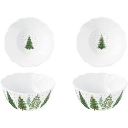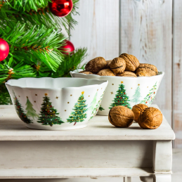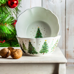 Miseczki powstały z wysokiej jakości, grubej i połyskującej porcelany typu Fine China, dzięki czemu są nie tylko piękne, ale również trwałe i praktyczne w codziennym użytkowaniu. Doskonale sprawdzą się do serwowania sałatek, przekąsek czy deserów, a ich świąteczny design wprowadzi do wnętrza ciepłą, bożonarodzeniową atmosferę.