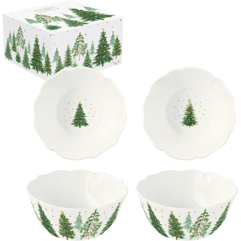Świąteczne chwile przy stole zasługują na wyjątkową oprawę – właśnie taką zapewnia zestaw dwóch porcelanowych miseczek z kolekcji „Festive Trees” marki Easy Life. Eleganckie salaterki o średnicy 14 cm i wysokości 6 cm, które zachwycają subtelnym motywem choinek oraz starannym wykonaniem.