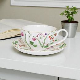 Porcelanowa filiżanka ze spodkiem z kolekcji En Plein Air to hołd dla natury i subtelnego piękna. Delikatne ilustracje roślin i owadów w pastelowych barwach nadają jej wyjątkowego charakteru. Zestaw doskonale sprawdzi się do serwowania herbaty lub kawy w eleganckim stylu.