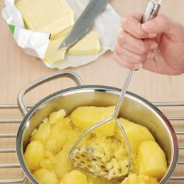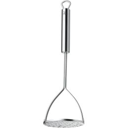 Wyposażony w ergonomiczną, stabilną rączkę oraz część roboczą z precyzyjnie zaprojektowanymi nacięciami, tłuczek umożliwia szybkie i wygodne rozdrabnianie ziemniaków i innych warzyw. Na zakończeniu uchwytu znajduje się praktyczne oczko, które ułatwia przechowywanie narzędzia w widocznym i łatwo dostępnym miejscu. Produkt jest przystosowany do mycia w zmywarce, co zapewnia wygodę i higienę codziennego użytkowania.