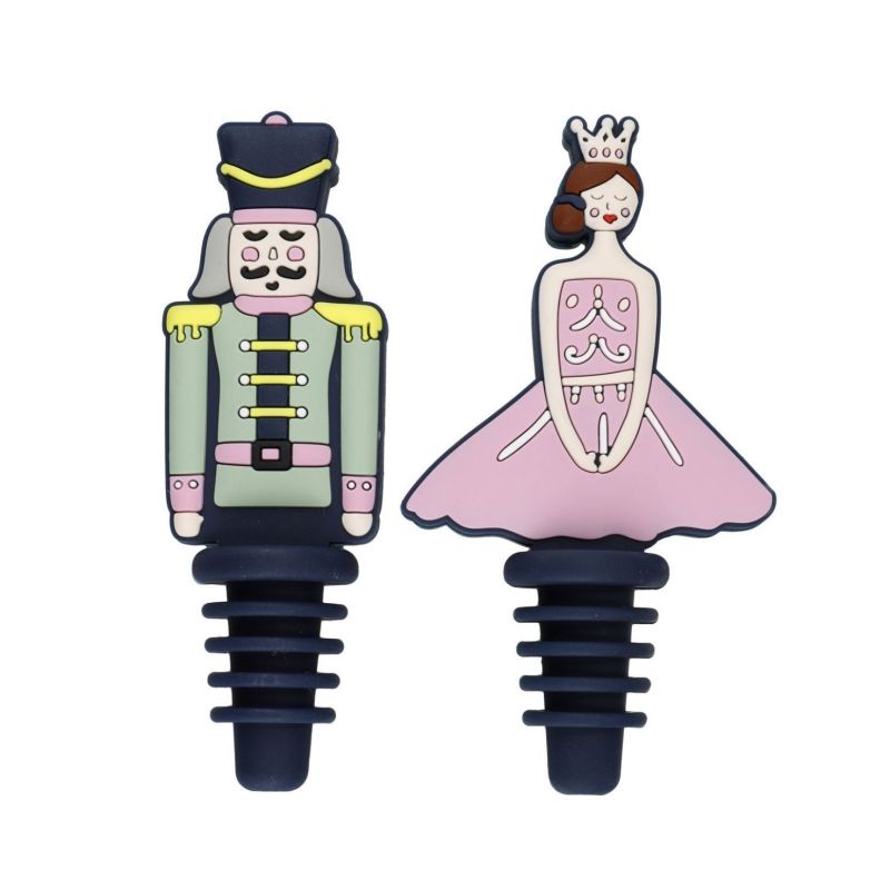 Zestaw dwóch wyjątkowych zatyczek do butelek KitchenCraft z kolekcji „The Nutcracker” to połączenie funkcjonalności i świątecznego uroku. Inspirowane klasyczną opowieścią o Dziadku do Orzechów, przedstawiają postacie żołnierza i Cukrowej Wróżki, które wprowadzą do każdego stołu odrobinę bajkowej magii. Zatyczki wykonane zostały z nietoksycznego silikonu klasy spożywczej (LFGB), co gwarantuje bezpieczeństwo i trwałość użytkowania. Dzięki szczelnemu zamknięciu, idealnie dopasowują się do większości butelek wina i szampana, zachowując świeżość trunku i musujący charakter bąbelków.