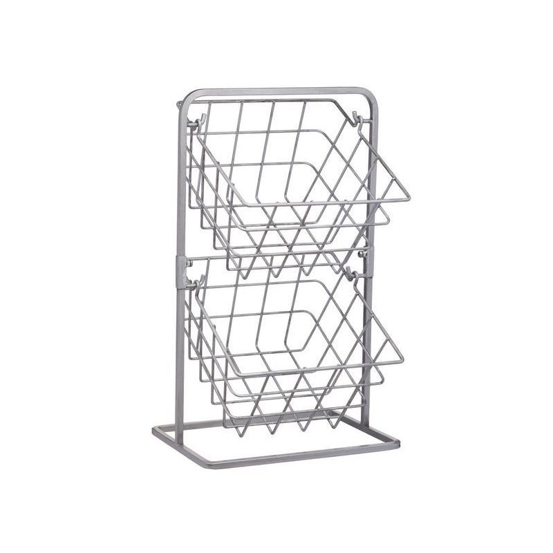 Nawet najmniejsza przestrzeń może zostać całkowicie odmieniona dzięki odrobinie industrialnego uroku. Te dwupoziomowe wolnostojące kosze do przechowywania to doskonały sposób na uporządkowanie kuchni. Umożliwiają przechowywanie owoców, warzyw, konserw, przekąsek, akcesoriów kuchennych i środków czystości, uwalniając zatłoczone szafki i nadając im atrakcyjny wygląd. Wystarczy je podnieść i wyjąć – idealne, gdy trzeba przenieść cebulę, czosnek i papryczki chili na deskę do krojenia, aby przygotować curry. Przydadzą się również podczas wiosennych porządków, gdy wszystkie produkty do sprzątania znajdą się w jednym, poręcznym koszu. Kosze i ich rama wykonane są z bardzo wytrzymałej stali węglowej, a nowoczesna, postarzana powłoka proszkowa nadaje stojakowi wygląd vintage, bez fizycznego zużycia.