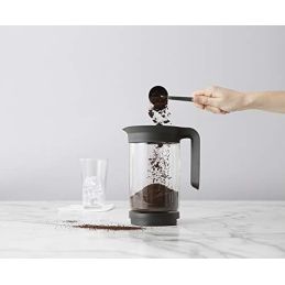 - FRENCH COFFEE PRESS: wystarczy wsypać zmieloną kawę i wlać gorącą wodę, założyć pokrywkę i zalać