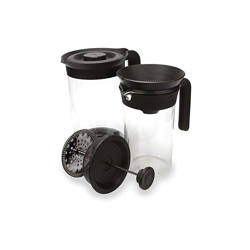 Innowacyjny zestaw kawiarka 3 w 1 do parzenia kawy La Cafetiere łączy w sobie funkcje ekspresu przelewowego, zaparzacza tłokowego (French Press) oraz cold brewera. Dzięki temu możesz cieszyć się trzema różnymi sposobami przygotowania ulubionej kawy, dopasowując napar do swojego nastroju i okazji.