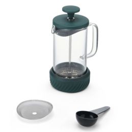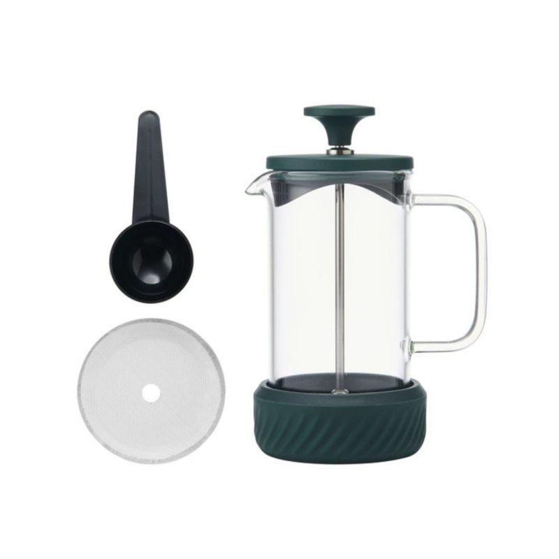 Wykonany z odpornego na wysoką temperaturę szkła borokrzemowego, z elementami ze stali nierdzewnej i silikonową podstawą, młynek łączy funkcjonalność z nowoczesnym designem. Szklany dzbanek wystarczy przepłukać, a tłok umyć ręcznie – i gotowe! Elegancki zielony kolor nadaje mu świeżości i stylu, doskonale pasując do każdej kuchni.