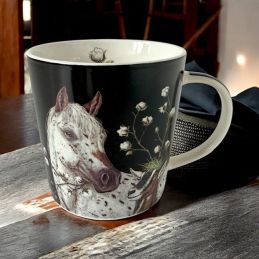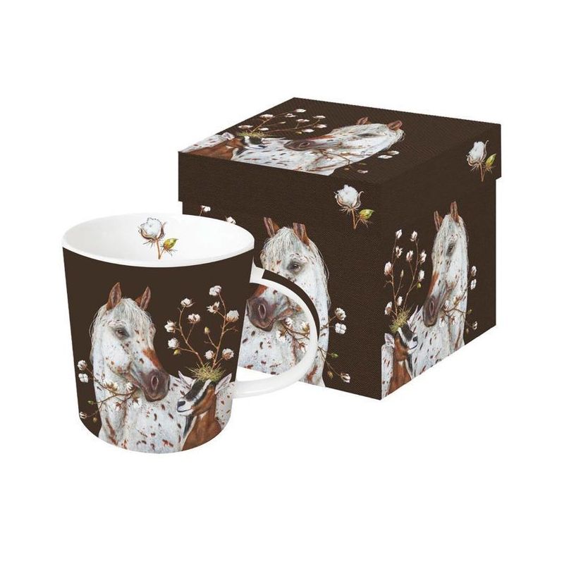 Kubek porcelanowy o pojemności 400 ml marki Paper Products Design z uroczym motywem konia i kózki, które wspólnie spędzają czas w harmonii. Wykonany z porcelany magnezowej, która jest zarówno elegancka, jak i wytrzymała. Poręczne ucho zapewnia komfort picia. Zapakowany w ozdobne pudełko o tym samym motywie – to doskonały pomysł na upominek dla miłośników zwierząt i natury.
