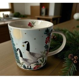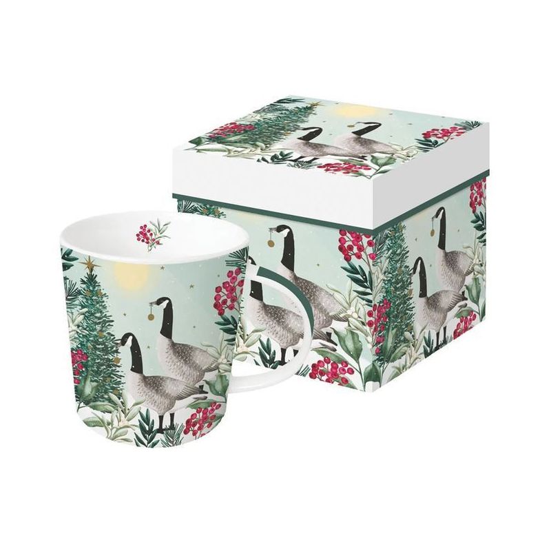 Kubek porcelanowy o pojemności 400 ml marki Paper Products Design z uroczym motywem pary gęsi. Wykonany z porcelany magnezowej, która zapewnia trwałość i estetyczny wygląd. Poręczne ucho ułatwia komfortowe trzymanie. Zapakowany w ozdobne pudełko o tym samym motywie – doskonały pomysł na prezent dla pasjonatów relaksu nad wodą.