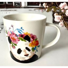Kubek porcelanowy o pojemności 400 ml marki Paper Products Design z uroczą Pandą z kolorowymi kwiatkami na głowie. Wykonany z porcelany magnezowej, która łączy elegancję z trwałością. Poręczne ucho zapewnia wygodę użytkowania. Zapakowany w ozdobne pudełko o tym samym motywie – doskonały pomysł na prezent dla wielbicieli klasyki i delikatnych wzorów.