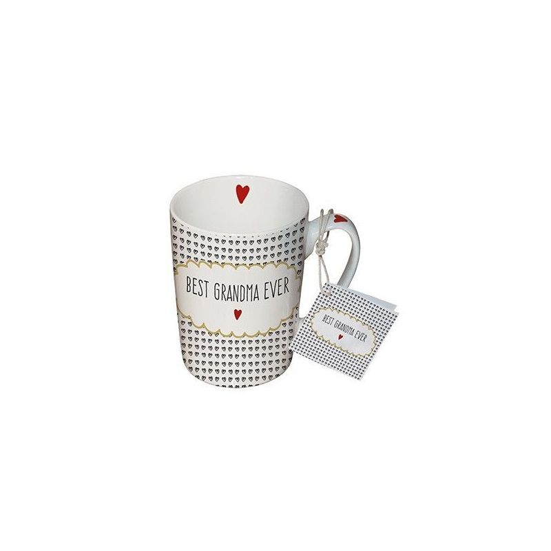 Kubek porcelanowych o pojemności 250 ml, przedstawiający stylizowany napis: „Best Grandma Ever” na kropkowanym tle. Wykonany z porcelany charakteryzującej się wyjątkową elegancją i wytrzymałością. Poręczne ucho gwarantuje stabilny uchwyt podczas picia. Idealnie sprawdzi się do serwowania kawy, herbaty, gorącej czekolady i naparów ziołowych.