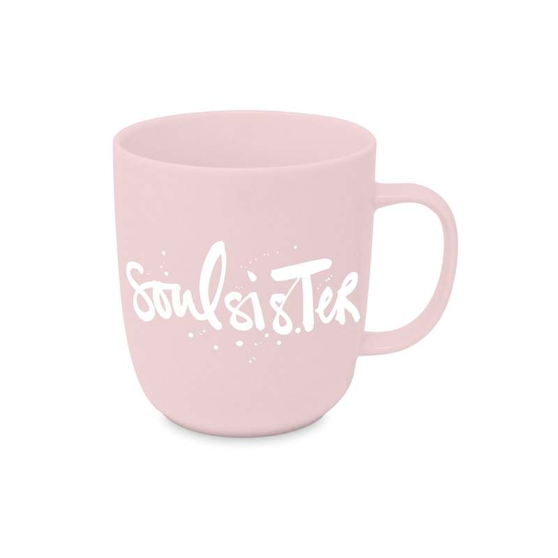 Kubek porcelanowych o pojemności 400 ml, przedstawiający stylizowany napis: „Soulsister” w kolorze matowym pudrowy róż. Wykonany z porcelany charakteryzującej się wyjątkową elegancją i wytrzymałością. Poręczne ucho gwarantuje stabilny uchwyt podczas picia. Idealnie sprawdzi się do serwowania kawy, herbaty, gorącej czekolady i naparów ziołowych.