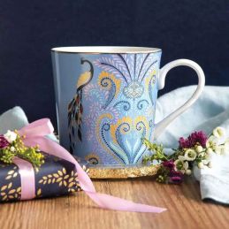 Podaruj prezent o wykwintnym pięknie dzięki eleganckiemu kubkowi Sara Miller London Peacock marki Portmeirion. Ten zachwycający kubek wykonany z delikatnej porcelany Fine China przedstawia majestatycznego pawia z imponującym ogonem ozdobionym kunsztownymi, filigranowymi detalami. Harmonijne połączenie delikatnych różów, soczystych fioletów i spokojnych błękitów tworzy niepowtarzalny, artystyczny efekt, który natychmiast przyciąga wzrok.