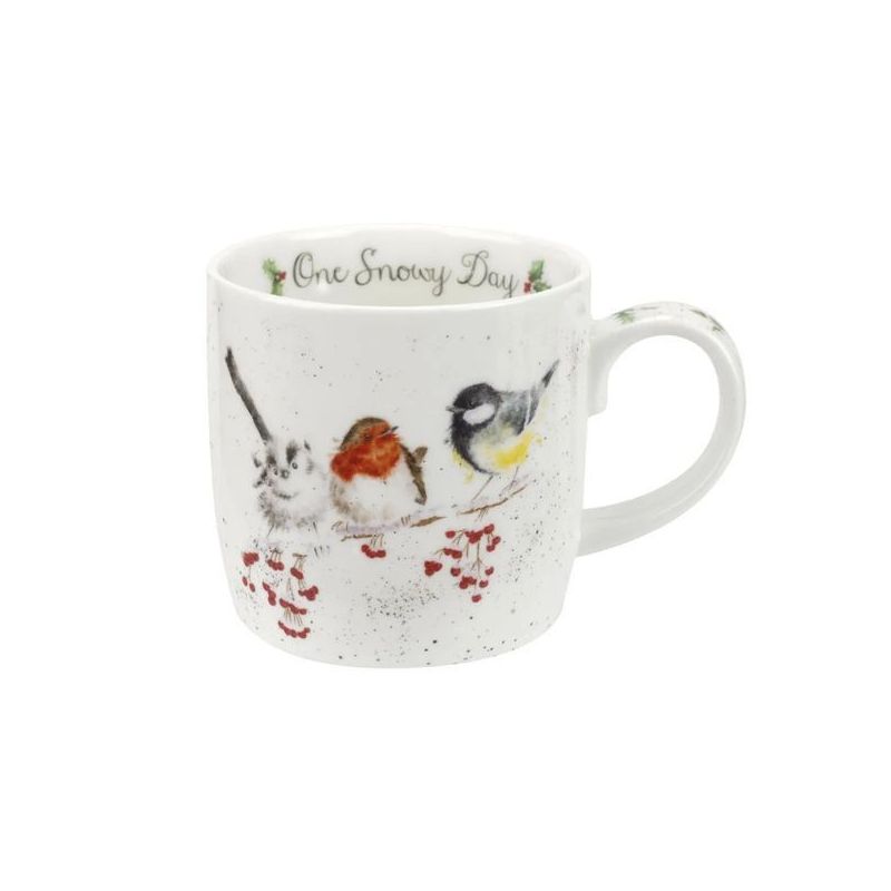Kubek porcelanowy z kolekcji Wrendale Designs marki Royal Worcester to wspaniały dodatek do świątecznych chwil, który możesz podarować sobie lub bliskiej osobie. Kubek ozdobiony jest uroczymi akwarelowymi ilustracjami przedstawiającymi kolorowe ptaszki siedzące na przyprószonej śniegiem gałązce jarzębiny. Wewnątrz kubka znajduje się delikatny napis: „One Snowy Day”, a ucho zdobią delikatne detale w postaci gałązek ostrokrzewu. Kubek wykonany jest z najwyższej jakości porcelany kostnej, charakteryzującej się wyjątkową elegancją i trwałością. To wyjątkowy element zastawy, który wzbogaci domową kolekcję świątecznych kubków oraz sprawi radość każdemu, kto go otrzyma.