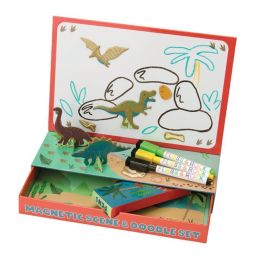 Kreatywny zestaw magnetyczny z serii Dinozaury to połączenie układanki z magnesami i tablicy do rysowania w jednym poręcznym pudełku. Dziecko może tworzyć własne scenki z motywem prehistorycznych dinozaurów oraz rysować i pisać po suchościeralnej powierzchni. To idealna zabawa rozwijająca wyobraźnię i kreatywność.