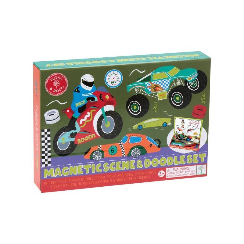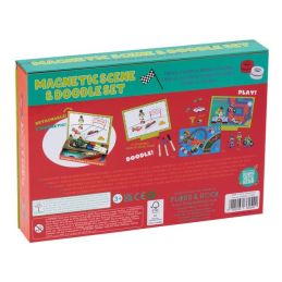 Kreatywny zestaw magnetyczny z serii Auta to połączenie układanki z magnesami i tablicy do rysowania w jednym poręcznym pudełku. Dziecko może tworzyć własne scenki z motywem szybkich pojazdów i kierowców wyścigowych, oraz rysować i pisać po suchościeralnej powierzchni. To idealna zabawa rozwijająca wyobraźnię i kreatywność.
