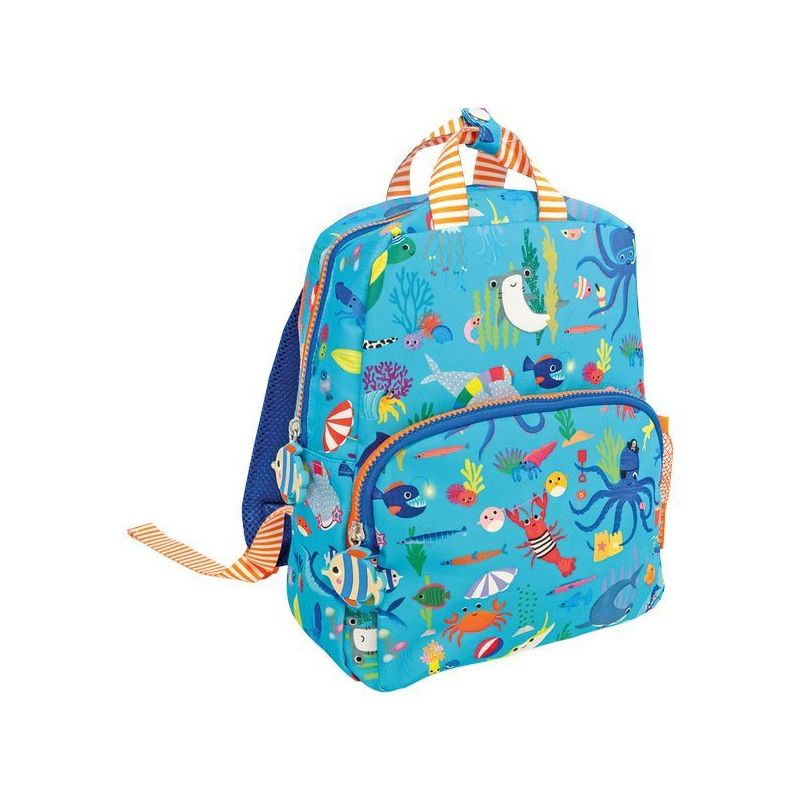 Plecak dla dzieci wykonany z materiałów z recyklingu, który łączy funkcjonalność i ekologiczną estetykę. Dzięki wodoodpornemu materiałowi – książki, przybory i lunch – pozostaną suche nawet w deszczowe dni. Intensywne kolory, motyw oceaniczny oraz detale jak kolorowe zamki i breloki czynią go idealnym towarzyszem do przedszkola, na wycieczki i codzienne przygody.
