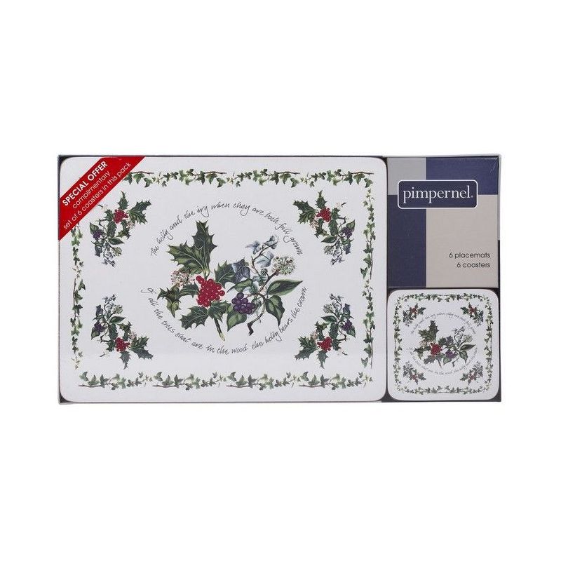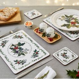 Zestaw dwunastu eleganckich i praktycznych bożonarodzeniowych podkładek w tradycyjnym angielskim stylu. Wspaniale ozdobionych motywem