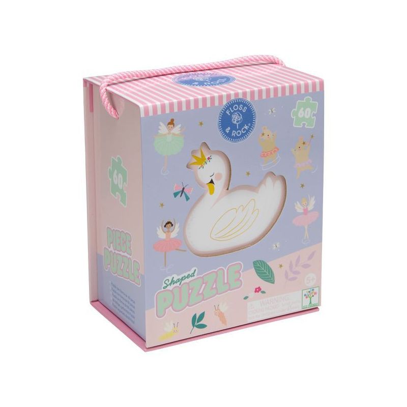 Elegancka i bajkowa układanka w unikalnym, wyjątkowym kształcie. Ilustracja przedstawia majestatycznego łabędzia otoczonego subtelnymi baletnicami oraz magiczną scenerię inspirowaną światem tańca.