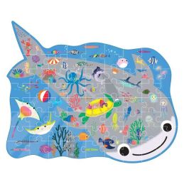 Fascynująca układanka w wyjątkowym, morskim kształcie z rekinem jako głównym bohaterem. Wokół rozciąga się świat głębin, kolorowe rybki, ośmiornice, kraby i podwodne rośliny tworzą niezwykłą, pełną życia scenę.