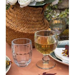 Szklanka pochodząca z nadającej prosty i hojny urok każdemu stołowi kolekcji Coteau. Wykonana z grubego prasowanego szkła z charakterystycznymi płaskimi żeberkami. Jej kształt jest reinterpretacją historycznego model z XIX-wiecznych kolekcji La Rochere.