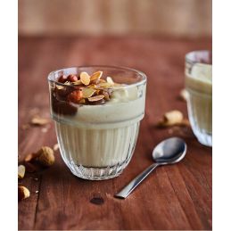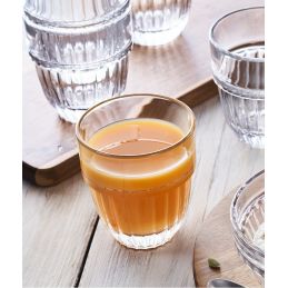 Szklanka pochodząca z nawiązującej do klasyki kolekcji Cedrat, wykonana z grubego prasowanego szkła. Dzięki zdecydowanie nowoczesnemu wzornictwu przywraca blask tradycyjnym francuskim szklanką. Łatwa w użyciu, została zaprojektowana tak, aby ułatwić codzienne życie, a zwłaszcza przechowywanie, dzięki pomysłowemu kształtowi, który można idealnie układać w stosy. Idealnie nadaje się do serwowania wody, soków i zimnych napojów.