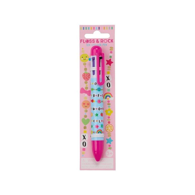 Długopis wielokolorowy 6w1 z motywem literek, zabawnych buziek, kolorowych znaczków. Praktyczny i atrakcyjny wizualnie gadżet szkolny, który pozwala dziecku pisać i rysować różnymi kolorami bez konieczności noszenia kilku długopisów.